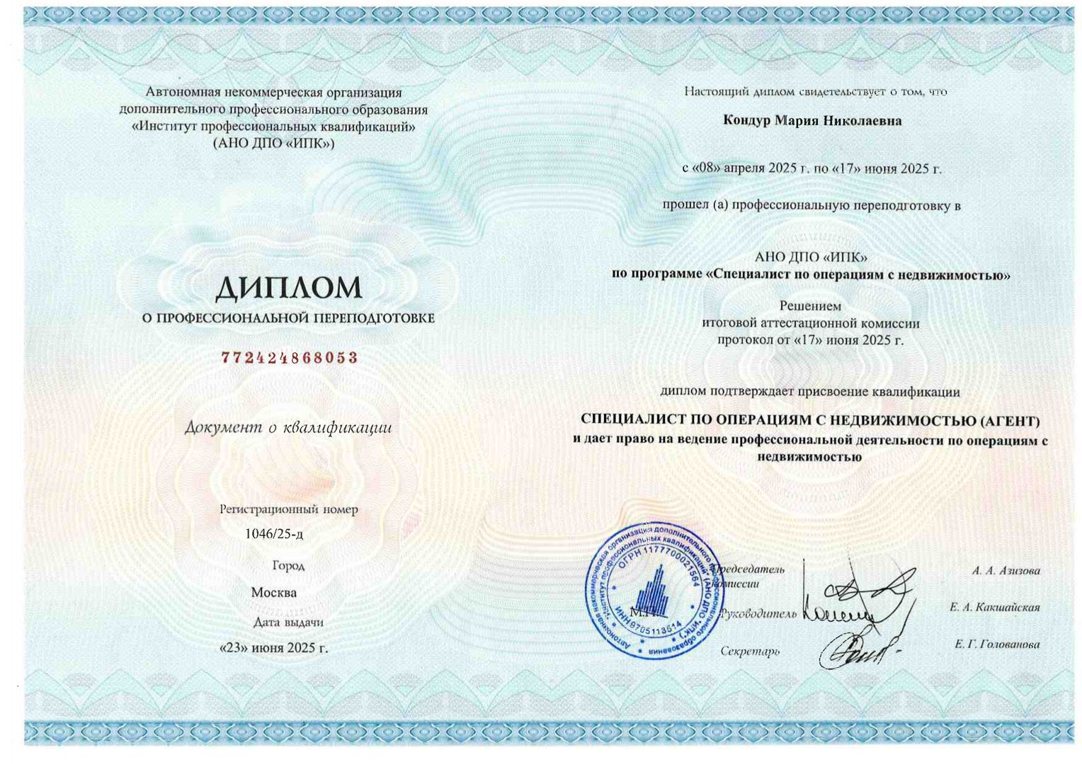 Хочу выразить огромную благодарность риэлтору Марии Кондур. Марию нам посоветовали как хорошего специалиста, который заинтересован в интересах клиента. Начали мы работу с Сентября. Был длинный путь, сквозь отказы, изменения ипотечных условий, продажу прежней недвижимости. Но в итоге Мария идеально подгадала момент (по условиям от банка, и стоимости недвижимости) и быстро вывела нас нас на сделку....