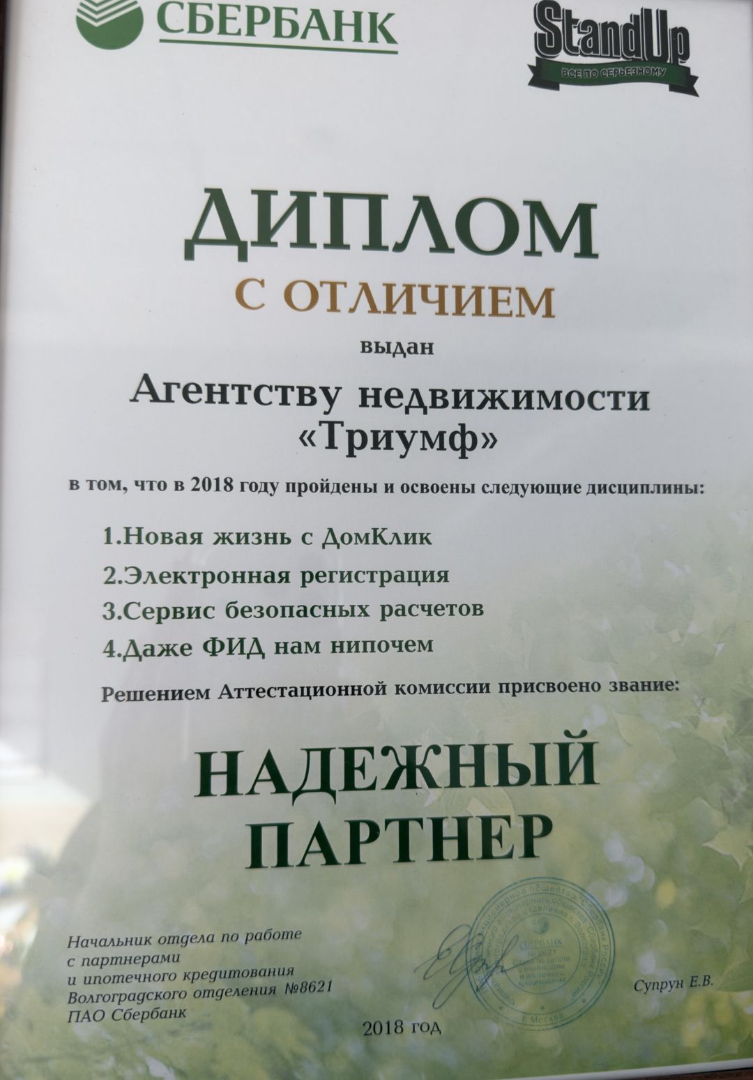 Не первый раз обращаюсь к юристу Елене Николаевне риэлтору Зинаиде Павловне,сделав выводы о проделанной грамотной работе Я очень довольна, обратившись в агентство Триумф вы убедитесь что это добрый и отзывчивые люди умеющие правильно объяснить и успокоить. Я желаю от души успехов в работе а самое главное здоровья!