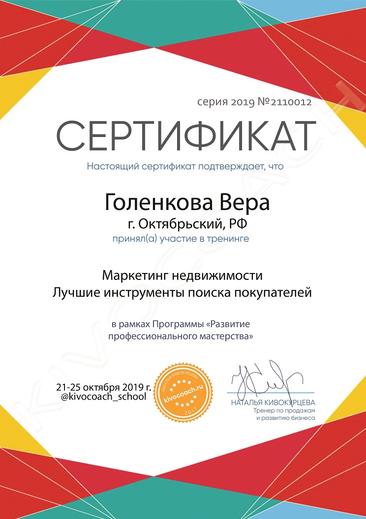 Спасибо большое Вере Геннадьевне! Она очень быстро подобрала мне именно тот вариант, который подошел мне! Всегда была на связи со мной, во всем мне помогала и советовала. Всем рекомендую!