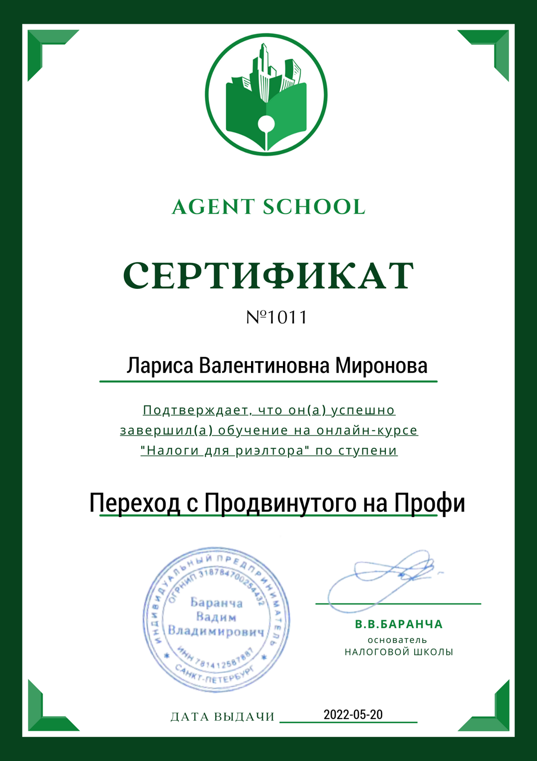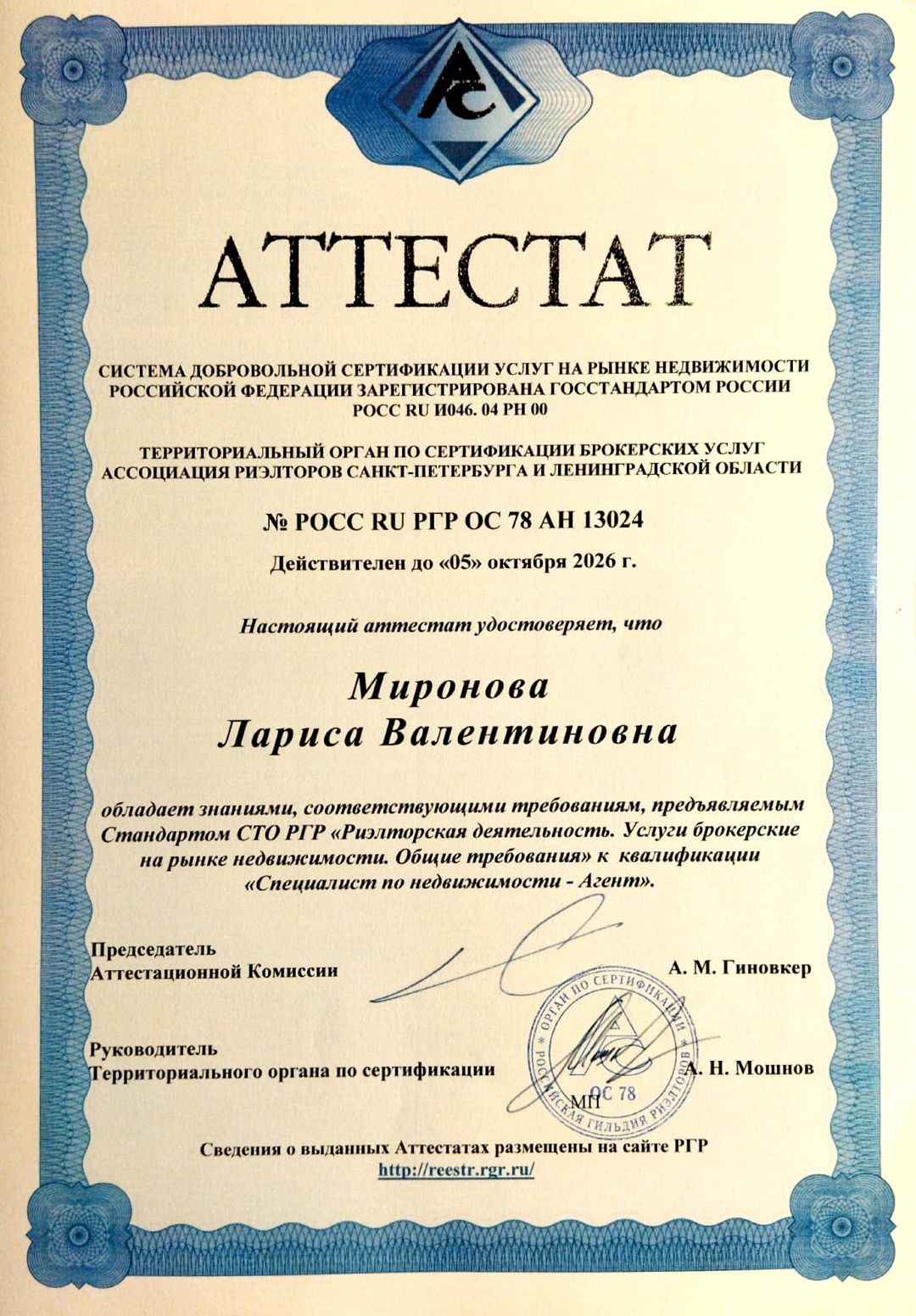 Добрый день! Спохватившись буквально за месяц до прекращения действия льготной ипотеки, первым делом встал вопрос о срочном выборе риелтора, тогда нам посоветовали обратиться к Мироновой Ларисе, отзываясь об её работе в сверх положительном ключе. В тот же вечер мы созвонились и с первых минут консультации поняли, что Лариса - это человек, который сразу же располагает к себе, очень ответственно,...
