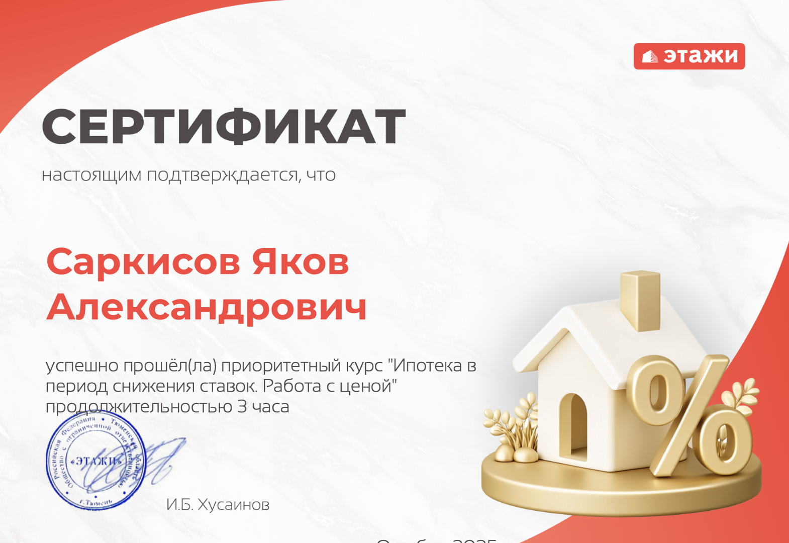 Меня зовут Яков, я специалист по недвижимости. Помогаю клиентам безопасно и выгодно купить или продать квартиру, подобрать подходящий вариант по ипотеке и провести сделку «под ключ». В своей работе я ценю прозрачность, внимание к деталям и заботу о клиенте. Со мной вы сможете принять взвешенное решение и избежать лишних рисков.