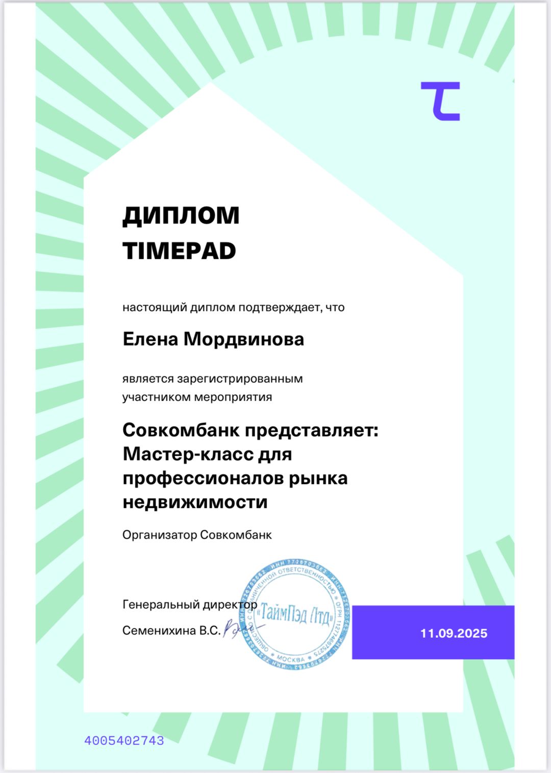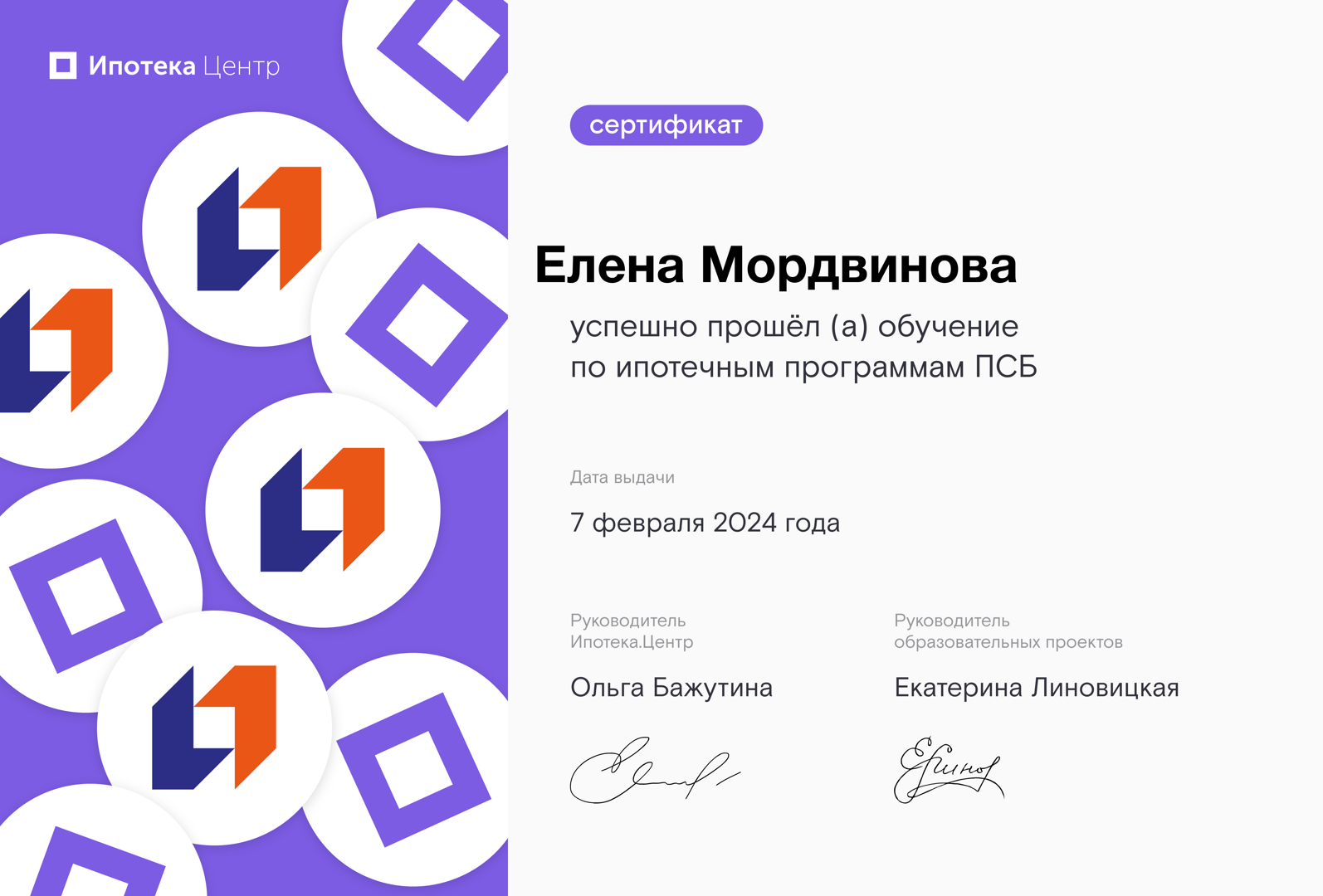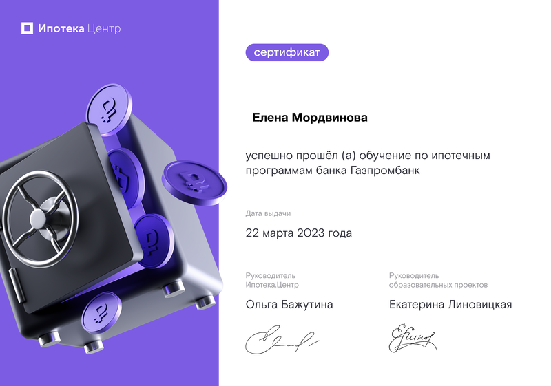 Огромное спасибо Елене за одобрение ипотеки и сопровождение сделки. Грамотный, опытный специалист, рекомендую!