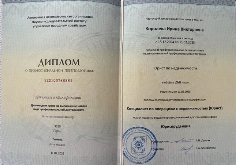 Спасибо большое Королевой Ирине за прекрасно проделанную работу. Специалист высшего класса! Выкладывается в работе на все 100% и более того. Помощь в продаже, полное и понятное сопровождение по документам и оформлению сделки.