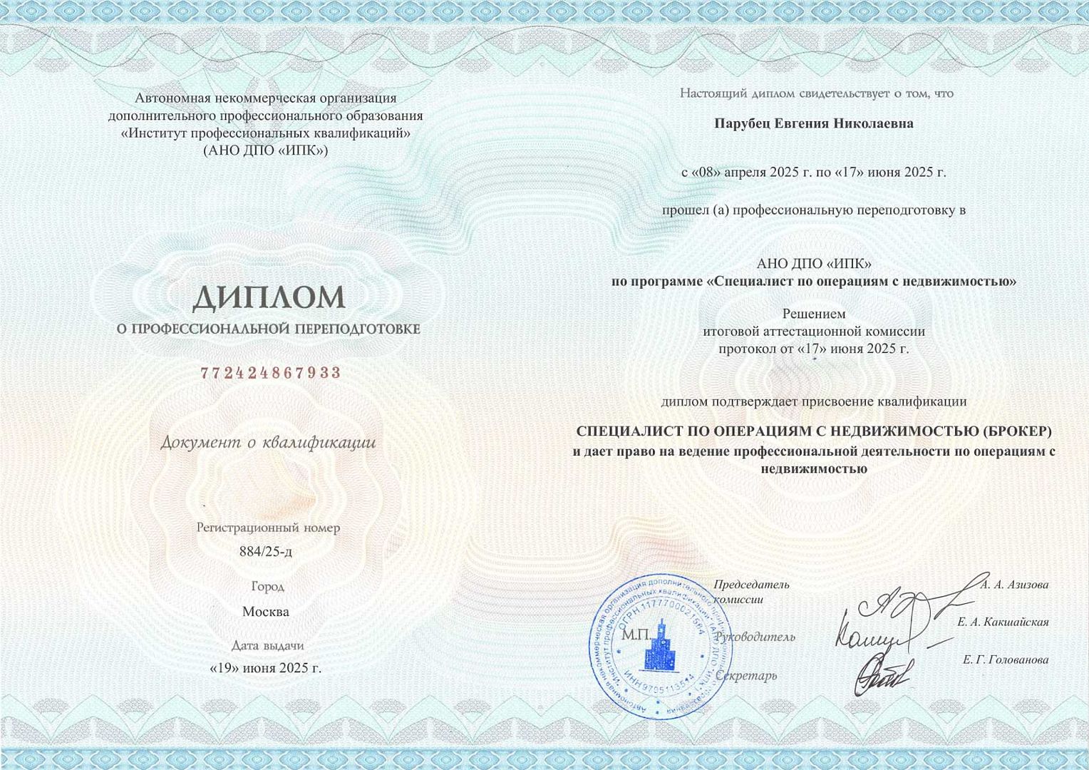 Большое спасибо, за работу Евгений Николаевны Парубец. . Сделку провела быстро и оперативно. Всегда буду рекомендоваться только ее.