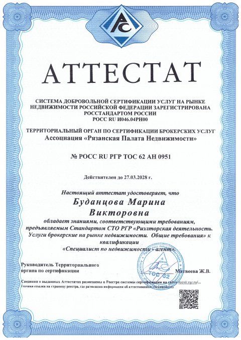 Благодарю Марину за профессионализм, тактичность и доступность в любое время. Внушает спокойствие и доверие на любом этапе сделки. Рекомендую.