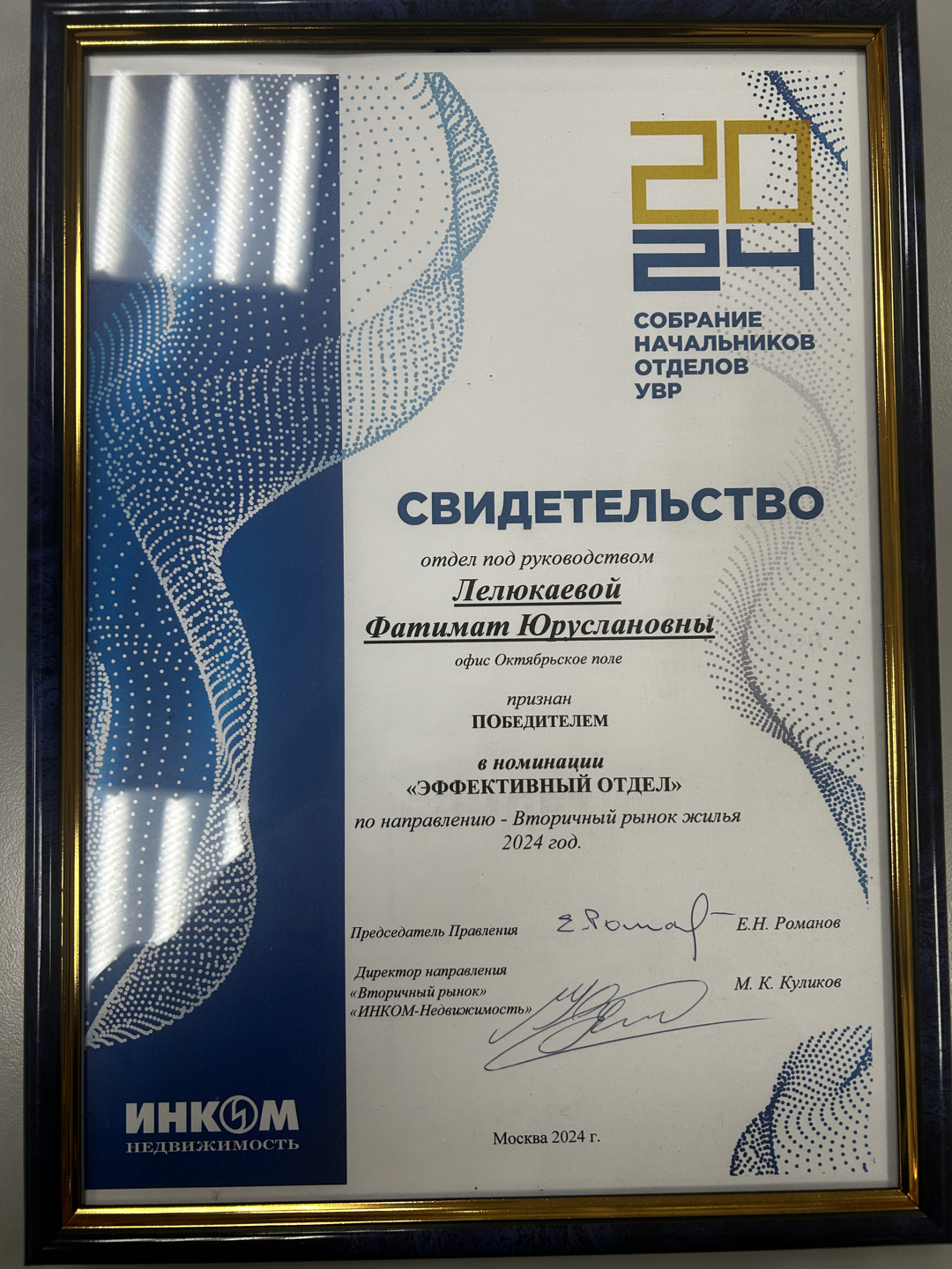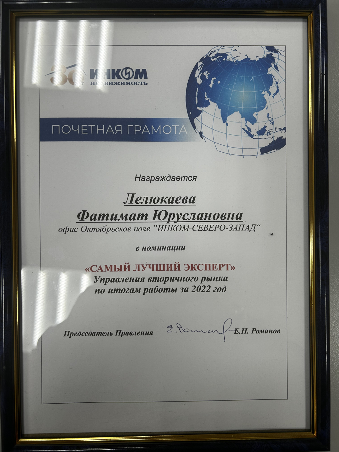 Искренне выражаю благодарность Фатиме за профессиональное сопровождение сделки. Профессионал своего дела - продемонстрировала глубокое знание рынка, ответственный подход к проверке документов и внимательное отношение к клиенту. Рекомендую от всей души! Еще раз спасибо!