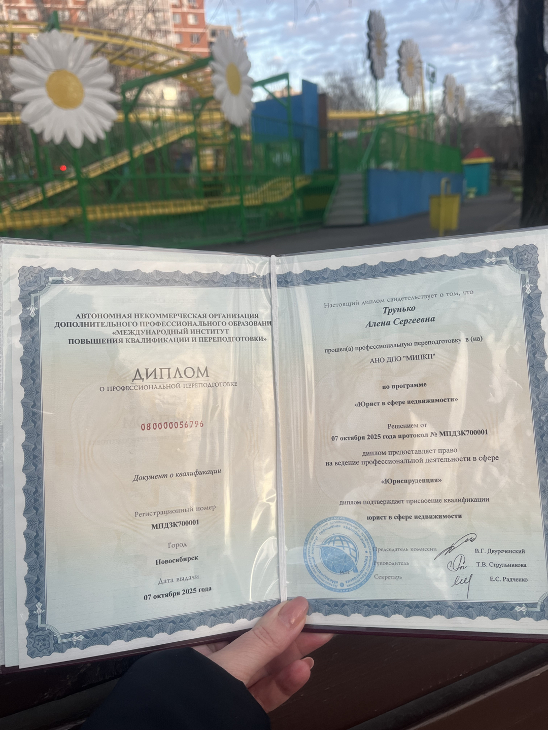 Хочу выразить огромную благодарность Трунько Алёне за помощь в покупке дома и подготовке всех необходимых документов, спасибо за профессионализм, огранизованность, оперативность и грамотный подход. Буду рекомендовать вас своим друзьям и знакомым. Алёна профессионал в своём деле!!!!
