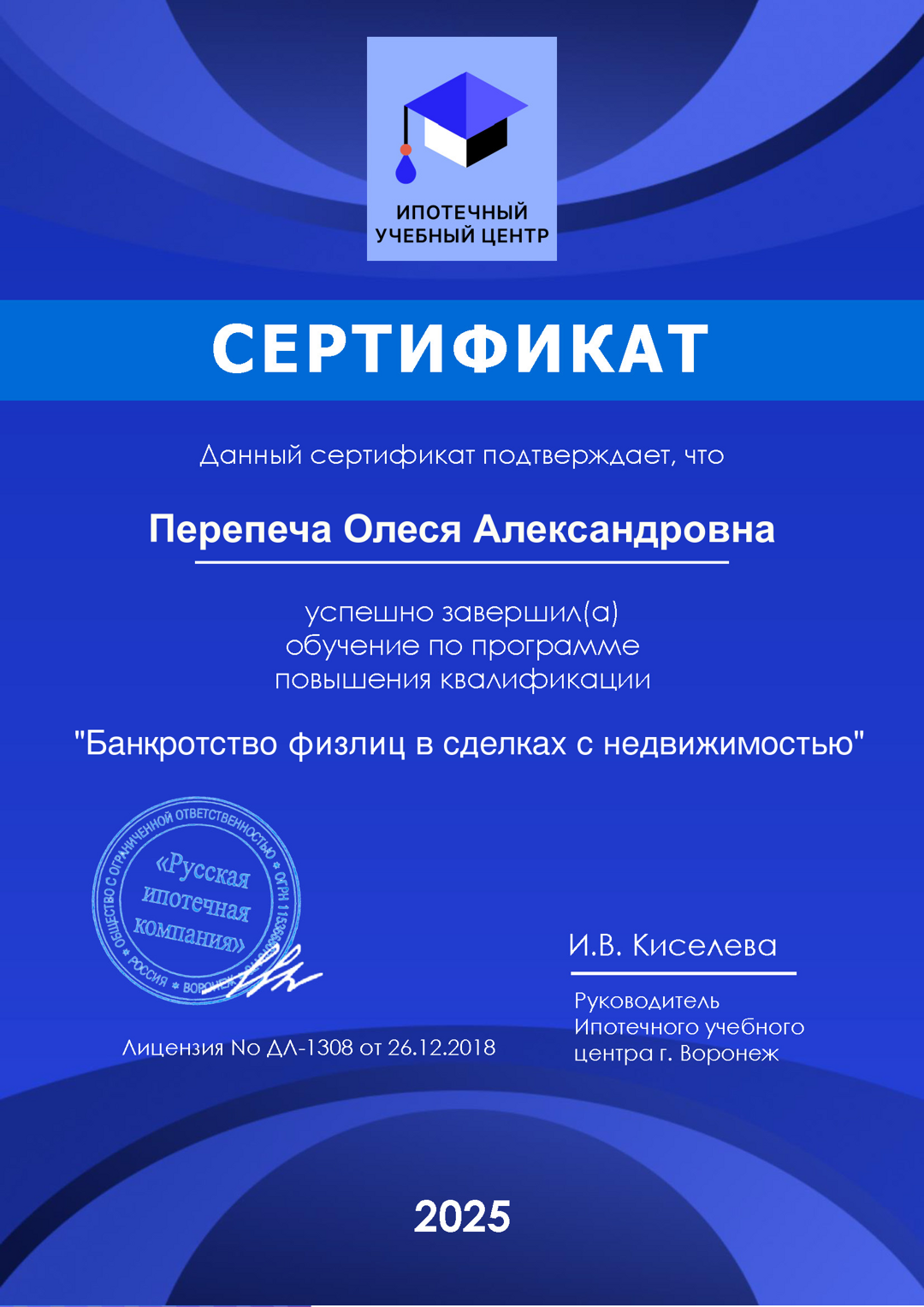 Риэлтор, ипотечный брокер, юрист. Свою карьеру в сфере недвижимости я начала в 2015 году, и с 2016 года успешно занимаюсь частной практикой. В 2020 году стала ипотечным брокером, став партнером ведущих банков. В 2023 году защитила красный диплом РАНХиГС и имею юридическое образование.