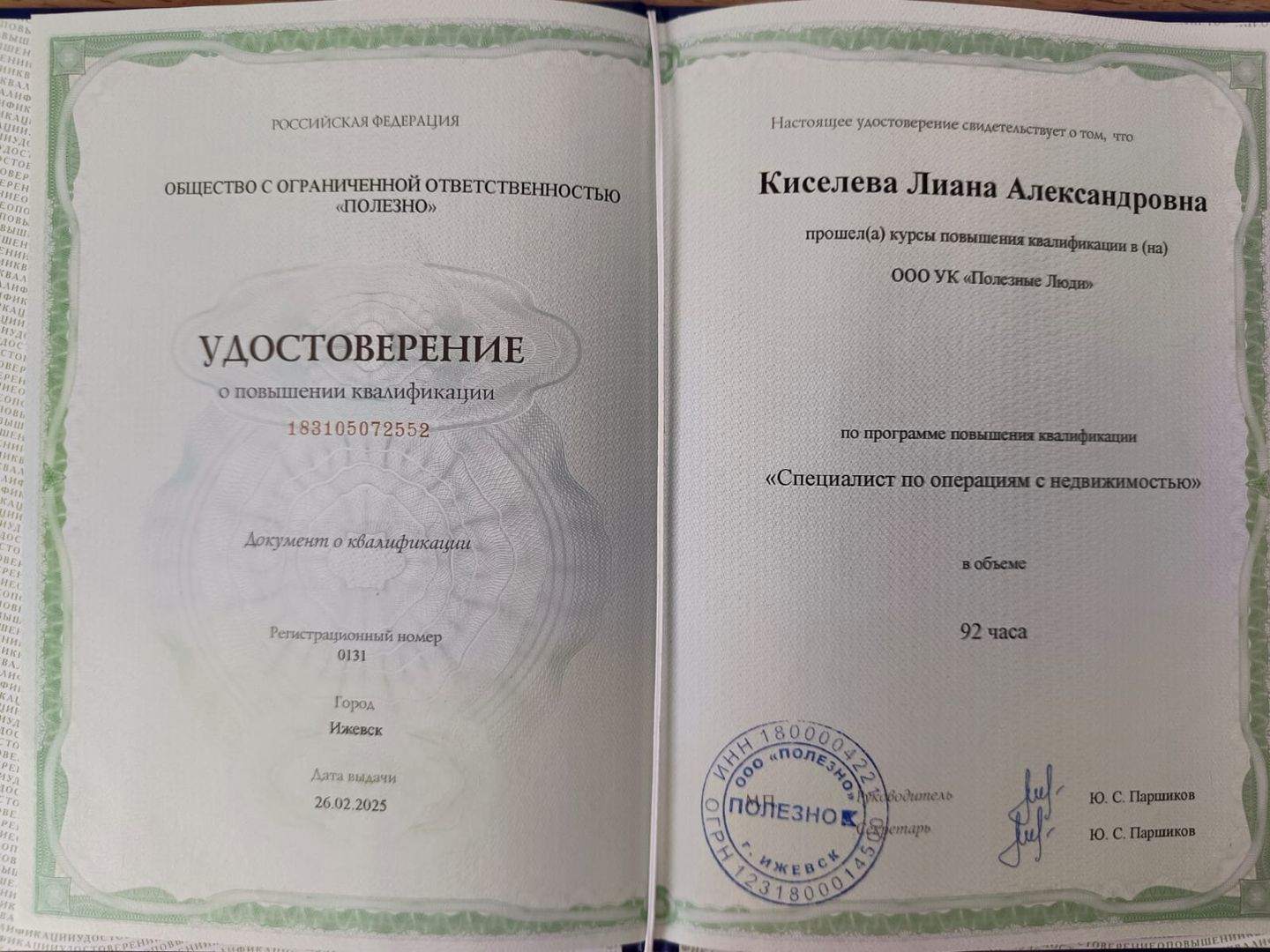 Проводили 2 сделки с Лианой, очень понравилось, грамотный специалист, уверенная в своём деле, объясняет все понятно, спокойна, вежливая. На любые не понятные вопросы рада всегда помочь и ответить. Рекомендую только её.