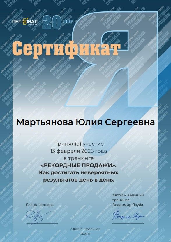 Хочу выразить огромную благодарность Юлии! Встретились, поговорили и мы решили работать только с ней. И не пожалели! Она проявила себя как настоящий профессионал своего дела. Глубокие знания, настойчивость, терпение и дипломатия Юлии позволяют в самых сложных ситуациях с недвижимостью быть спокойными нам, клиентам!