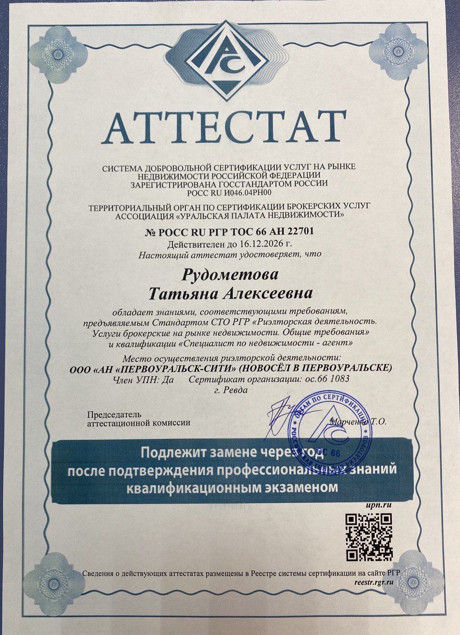 Если вам нужно найти агента по недвижимости в городе Первоуральск для продажи или покупки квартиры, воспользуйтесь поиском на Домклик. Ориентируйтесь на опыт работы агента, количество совершённых сделок и отзывы.