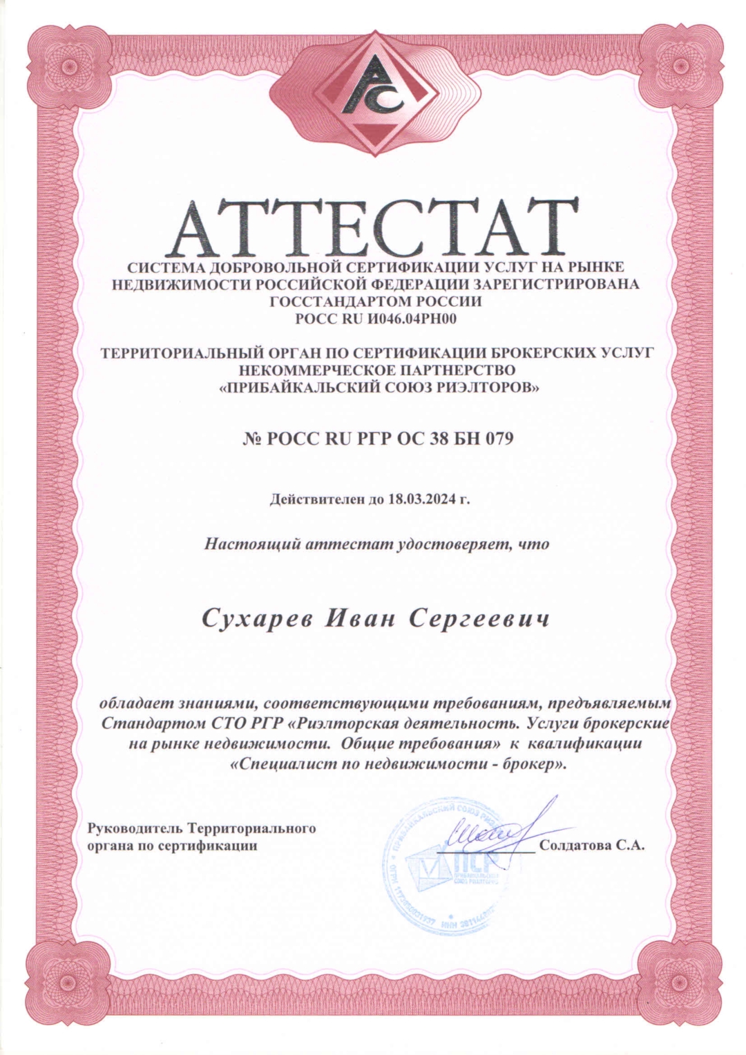 Я — директор АН -ГОРОДОК- г. Иркутск занимаюсь операциями с недвижимостью (продажей и покупкой) в интересах своих Клиентов, по законам РФ с 2008 года. Теоретические знания риэлторской деятельности, с подтверждением аттестатов и сертификатов, в обязательном порядке, прохожу сам и все сотрудники. Ясность и определенность действий при оказании услуг,оперативное начало работы, результат в...
