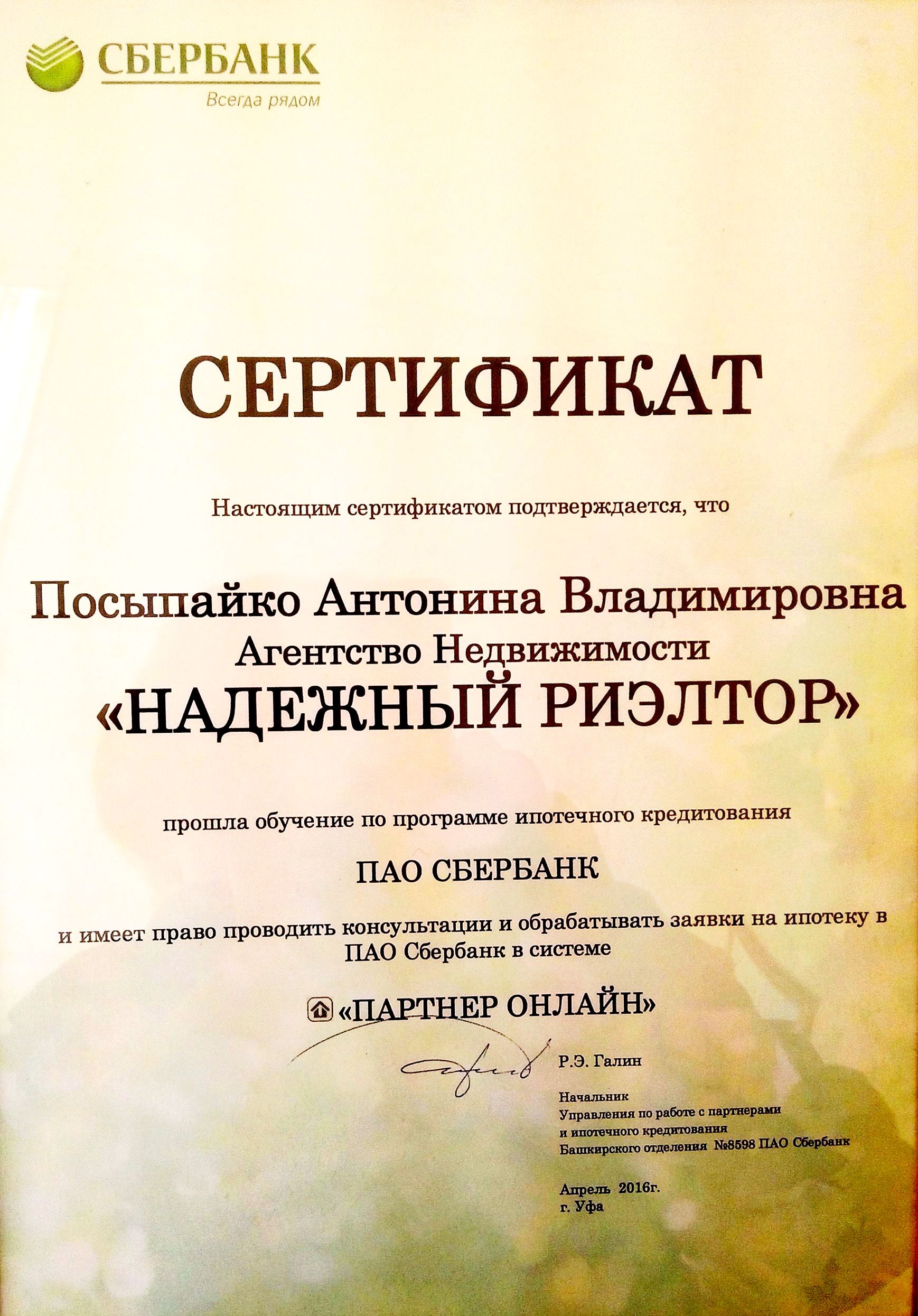 - специалист по недвижимости с 2011 года в АН Надежный риэлтор в Уфе -в Ассоциации профессиональных риэлторов с 2017года - в Башкирской гильдии риэлторов с 2019 года