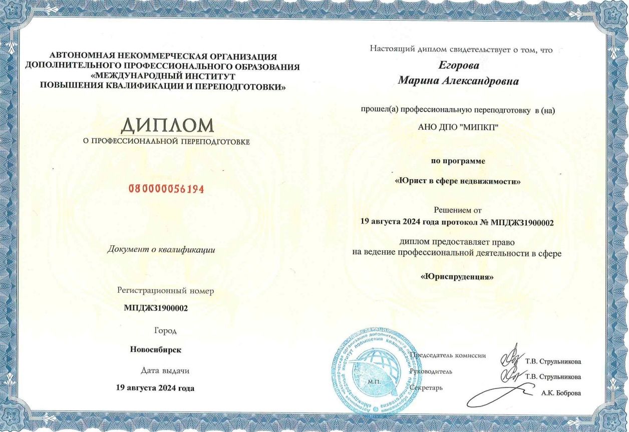 Возникла необходимость приобрести квартиру, впервые в жизни. Решала этот трудный вопрос с риэлтором Егоровой Мариной,перебрались много вариантов. В конце -концов вопрос решён. Спасибо ей за терпение и профессионализм , результатом я довольна!!!
