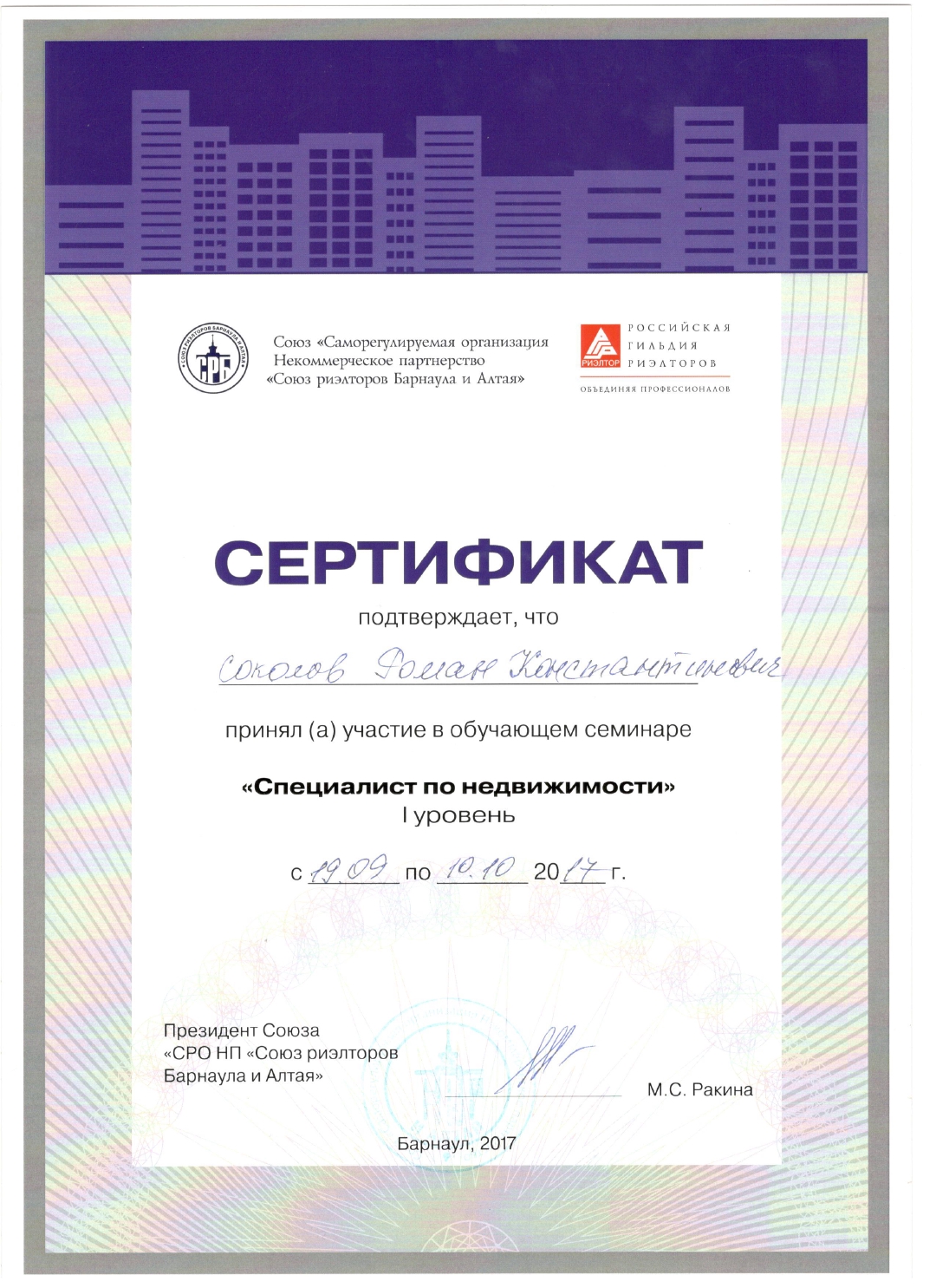 Специалист первичного и вторичного рынка недвижимости Опыт работы: 4 год