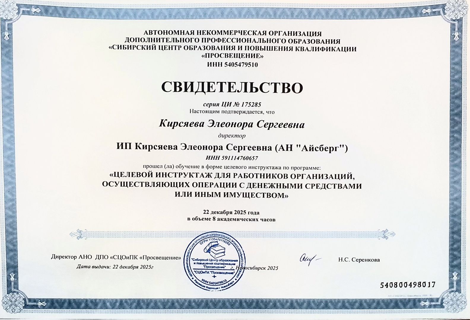 Доброжелательно, спокойно, без суеты и лишнего "напряга" подготовила необходимые документы для сделки. Спасибо огромное. Рекомендую обращаться к Элеоноре всём кто не располагает свободным временем и предпочитает решать вопросы быстро и выгодно.