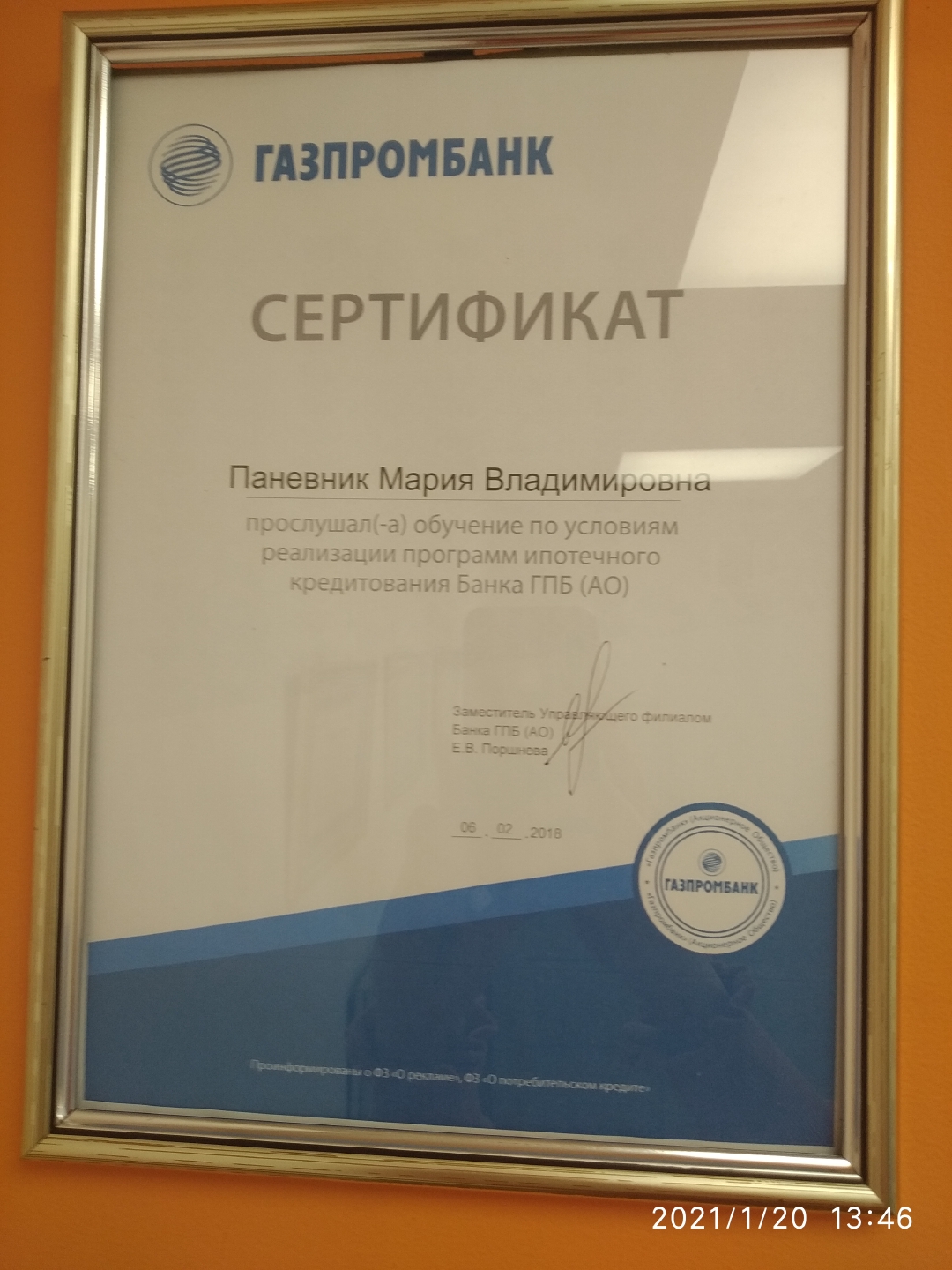 Хочу выразить благодарность Марии Владимировне за отличное сопровождение ипотеке и сделки, помощь по любым вопросам и решением всех проблем возникающих при ипотеке и сделке .Все замечательно.Спасибо!!