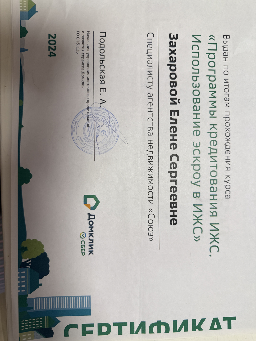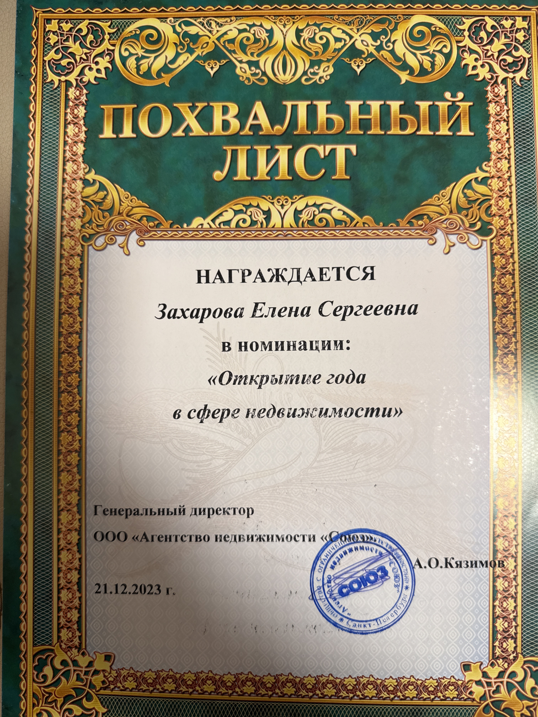 Хотим выразить огромную благодарность риелтору Захаровой Елене за проделанную огромную работу по продаже нашей квартиры и покупки новой. Сделка была сложная , с мат капиталом, опекой, нотариусом. Елена грамотно выстраивала каждый шаг сделки. Очень рекомендуем данного агента. Спасибо огромное 🙏