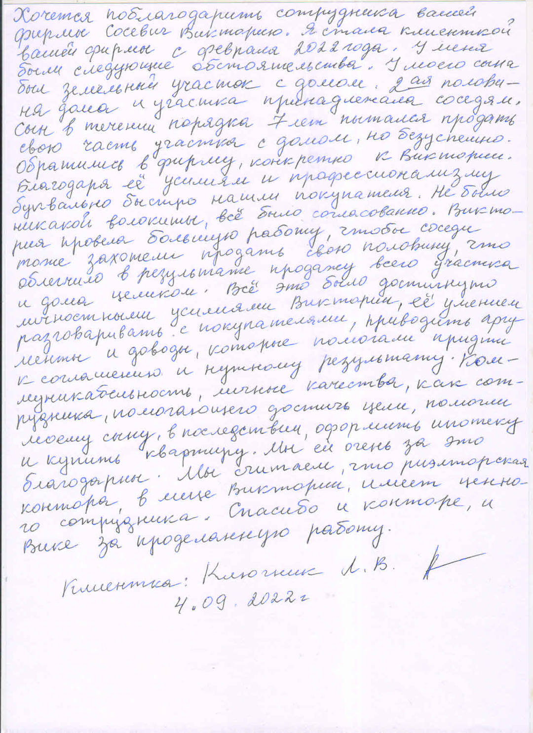 Огромное спасибо за проведенную работу по подготовке и проведению нашей сделки. За Ваше чуткое отношение к клиентам и грамотный подход к делу. Отличный риелтор. Всем рекомендуем. Обращайтесь по любым вопросам