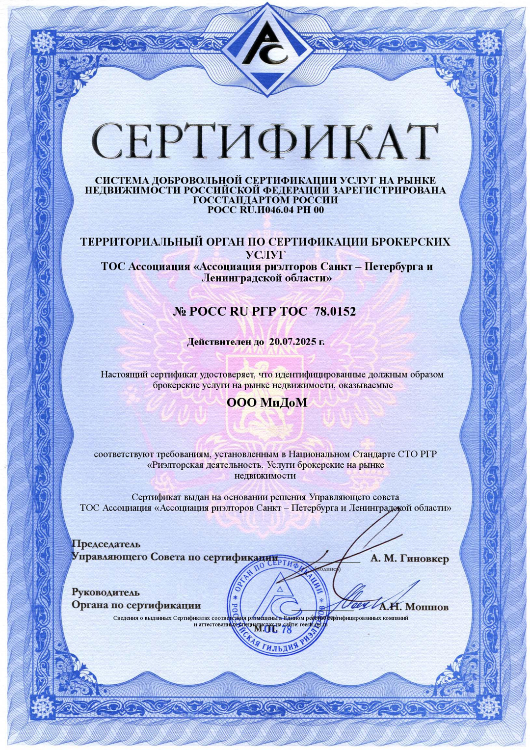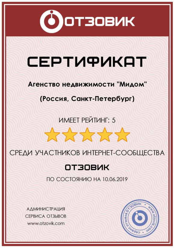 Заслуженная компания по экспертному сопровождению сделок с недвижимости Сертифицированный член Ассоциации риелторов Санкт-Петербурга и Ленинградской области и Российской гильдии риелторов Обладатель наград профессиональной премии в сфере недвижимости «КАИССА» — «Лучшая риелторская компания численностью до 50 сотрудников» (2021) и «Лучший дебютант на рынке недвижимости» (2020) Серебряный партнёр...