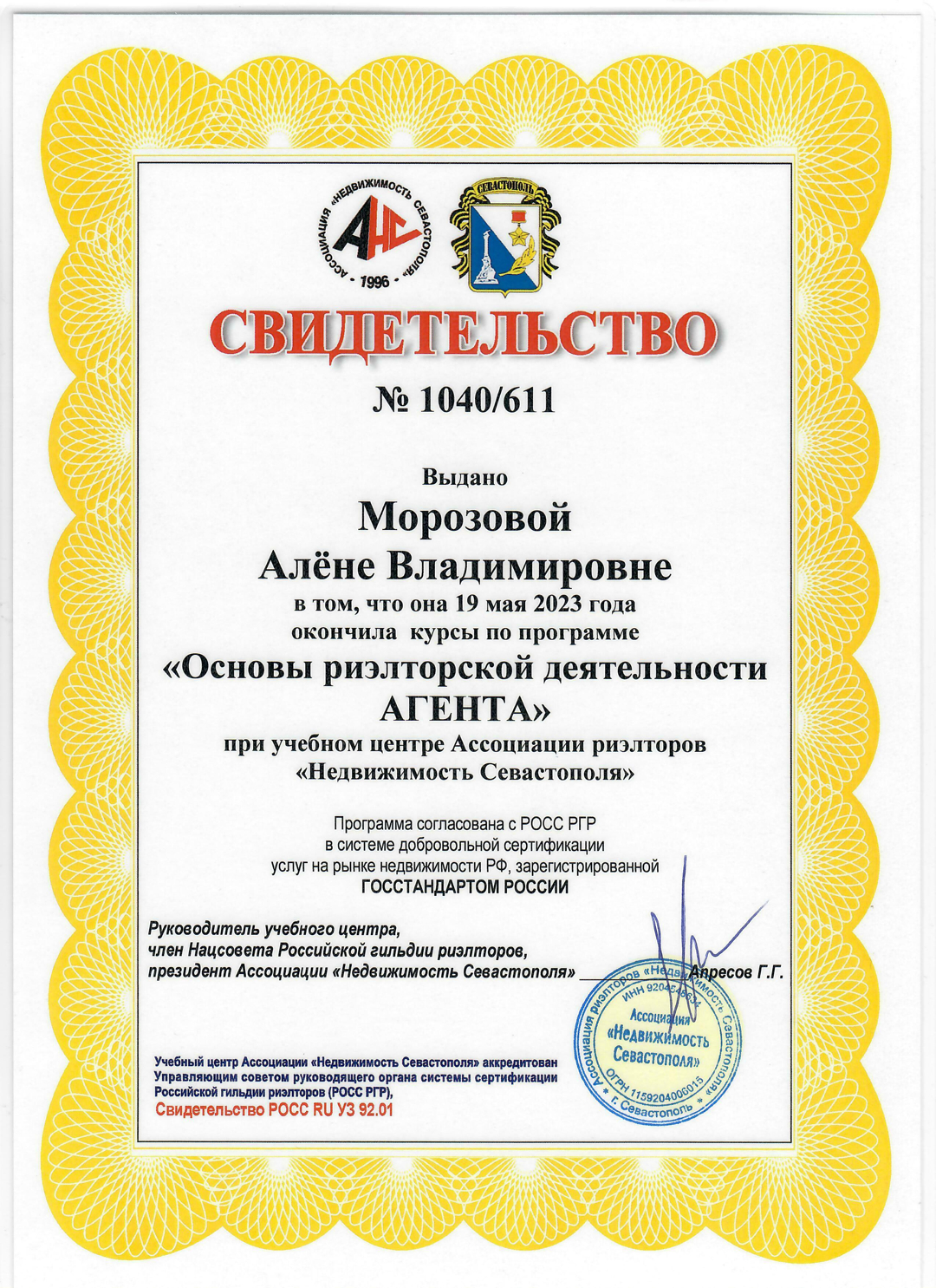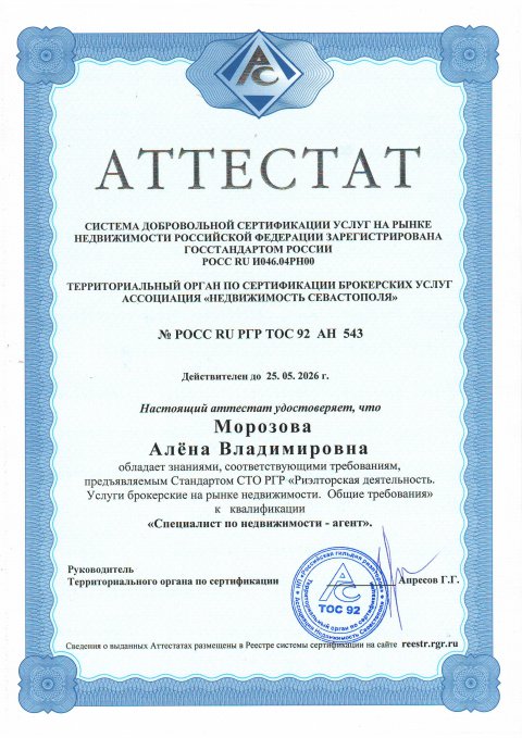 Юрист в сфере недвижимости. Специализация: государственные жилищные сертификаты. Акцент: безопасность сделок. Руководитель Агентства недвижимости "Морозов"