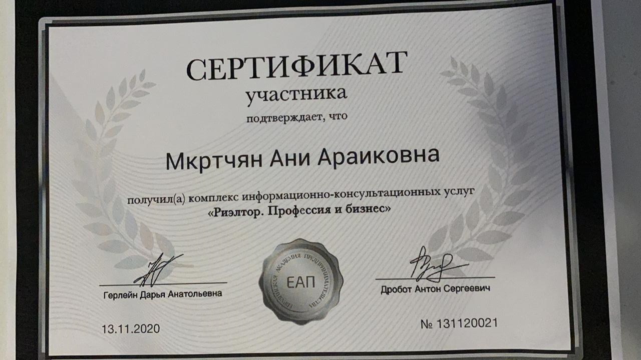 Меня зовут Мкртчян Анна . В сфере недвижимости более 10 лет. 🔹Продам недвижимость дорого и максимально в короткий срок. 🔹Помогу купить квартиру мечты, безопасно 🔹Если вы хотите выгодно вложить деньги с целью получения прибыли, помогу подобрать жк или застройщика. Разработаю стратегию, просчитаю прибыль. 🔹Ваша квартира в ипотеке или другое обременение – для меня это не...