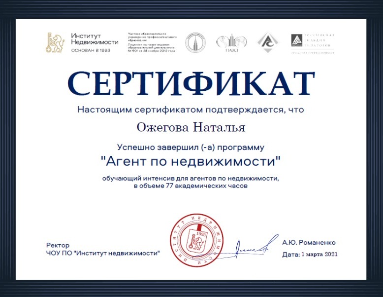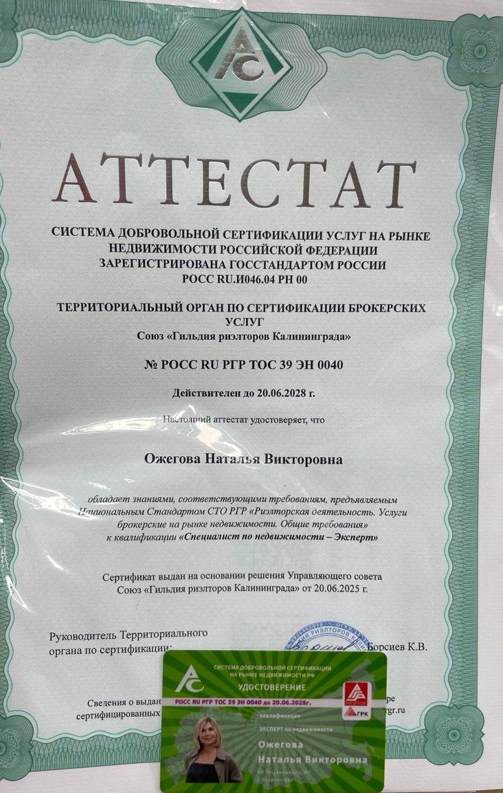 Хочу поблагодарить Наталью, за прекрасную работу 🤝 сделка была проведена быстро, легко, профессионально, грамотно и качественно. Мы остались очень довольны работой с настоящим профессионалом своего дела 👏🤝 Будем обращаться к Наталье и впредь, и рекомендовать всем своим знакомым!