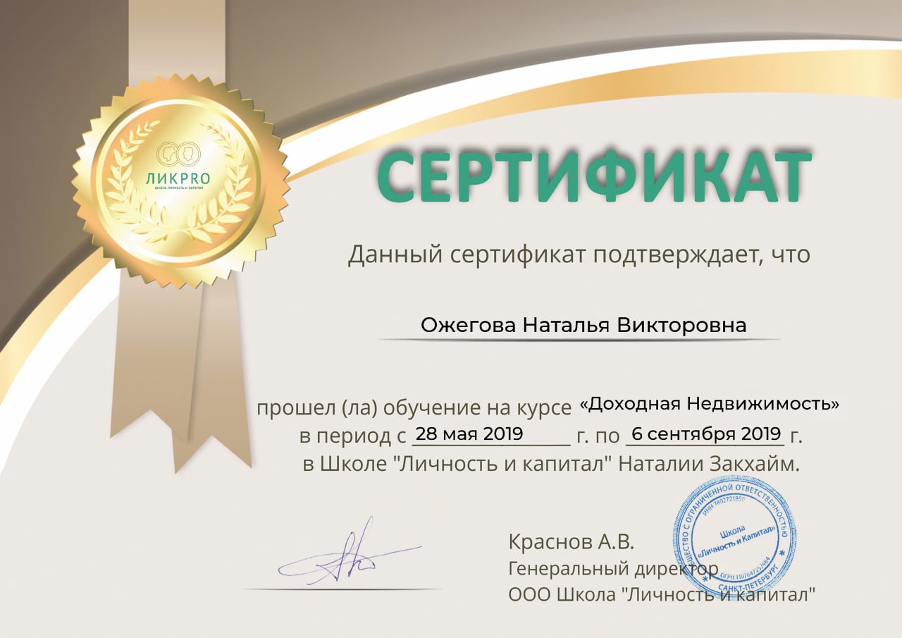 Наталья - юридически грамотный специалист, прекрасный человек. Общение спокойное, с уважением. Знает все тонкости современных сделок. При возникновении вопросов предлагала разные юридически грамотные варианты. Продажа моей недвижимости с Натальей прошла быстро, комфортно и самое главное уверенно для меня и покупатели были спокойны. Рекомендую этого риэлтора на 1000 процентов.