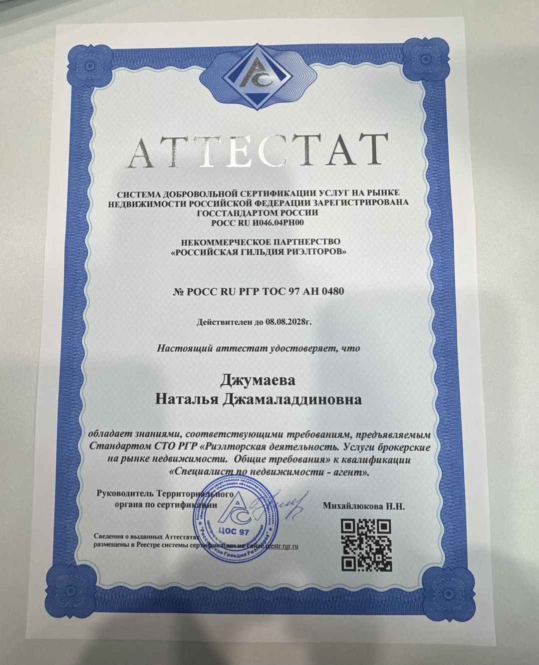 Огромное спасибо Джумаевой Наталье !!! Помогла найти квартиру мечты , вечером скинула варианты , а уже утром мы стояли на сделке и оформляли нашу квартиру . Наталья постоянно на связи с нами была , все помогла оформить , везде сопроводила . Обращайтесь, рекомендую . Не ждите , если вам предлагают такие шикарные ставки по ипотеке .