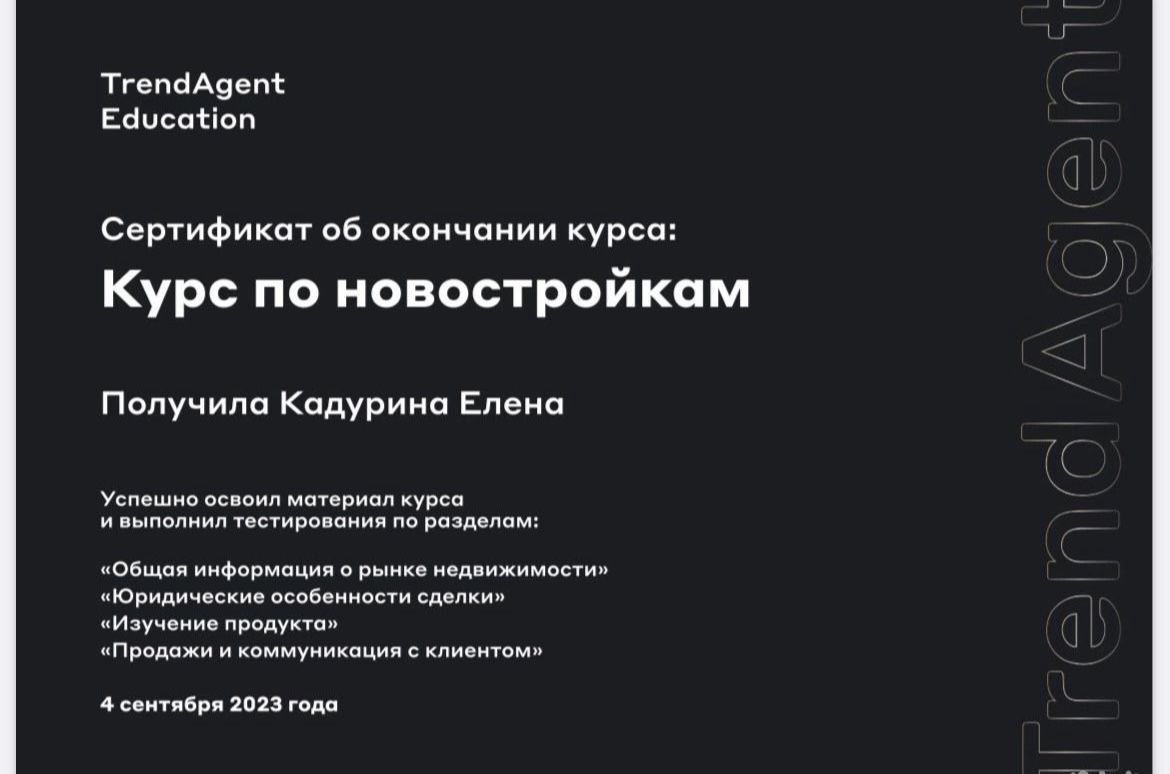 Успешный риэлтор с высшим экономическим образованием. Работаю по всей Ленинградской обл и всей Росссии. Множество удачных сделок и сопровождений, десятки довольных клиентов. Любой уровень сложности .Сделки под ключ по новостройкам бесплатно .Любая консультация бесплатно.
