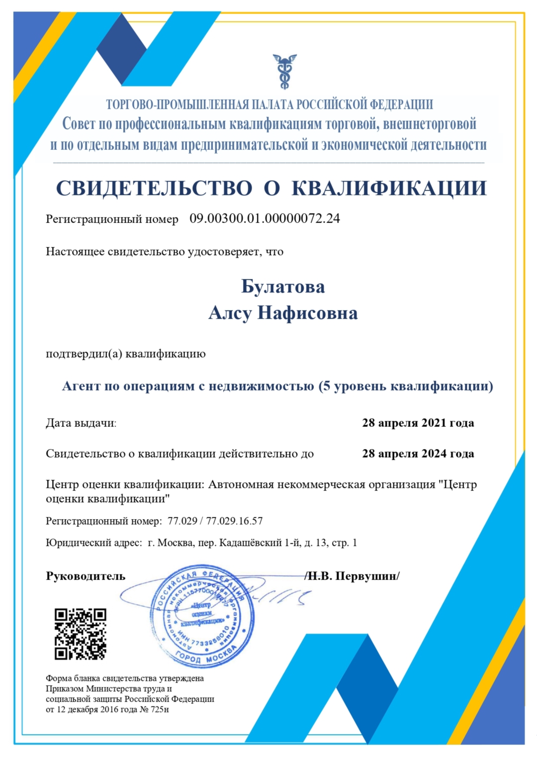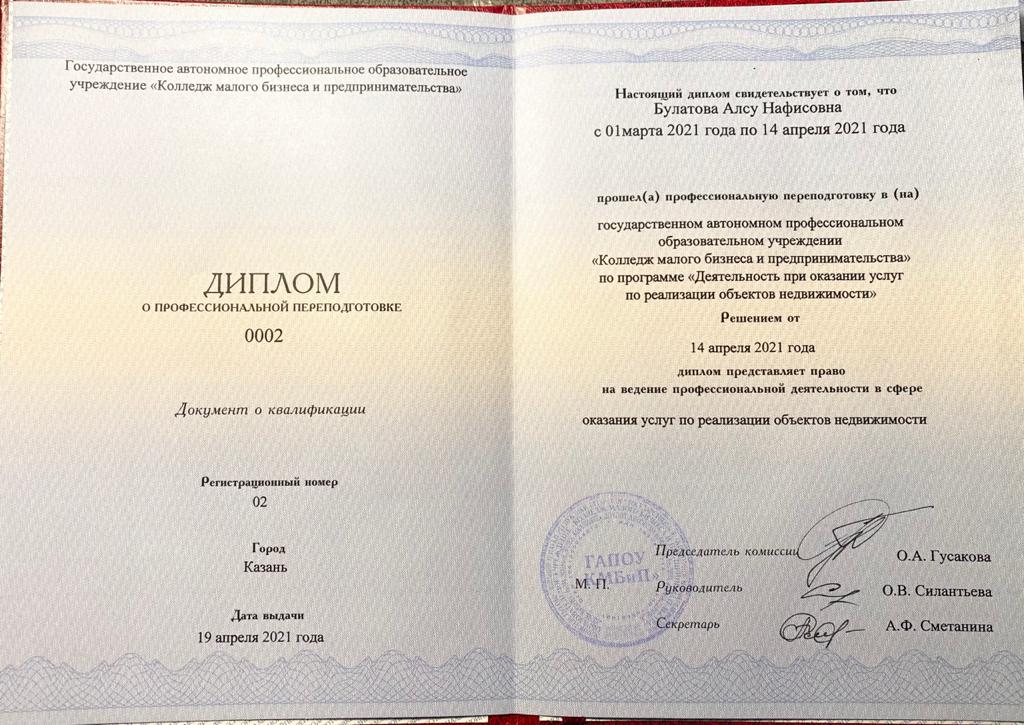 Риэлтор, образование юридический факультет КГУ. Квалификация риэлтора подтверждена всероссийским свидетельством.