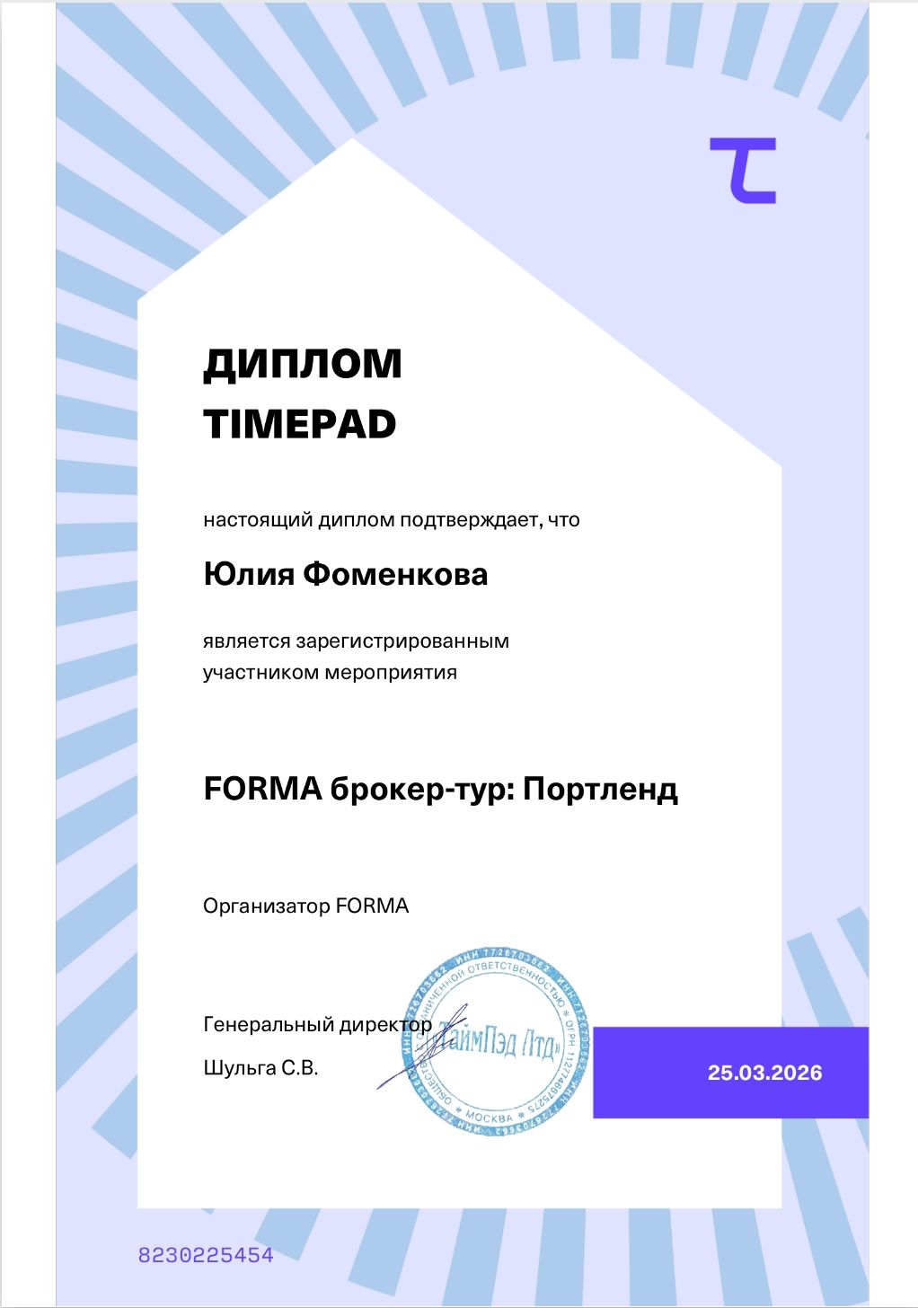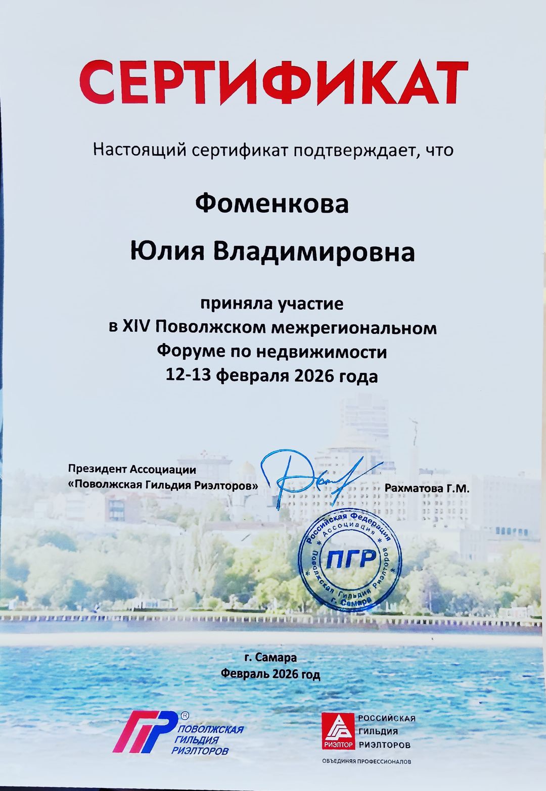 Выражаю глубокую благодарность риэлтору Фоменковой Юлии Владимировне за безупречное проведение работы по покупки недвижимости. Отмечаю чуткое отношение к клиенту, высокий уровень компетенции и считаю ее специалистом высокого класса.
