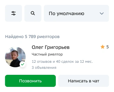 При поиске обращайте внимание на оценку риелтора, количество сделок, объявлений и то, как заполнен профиль